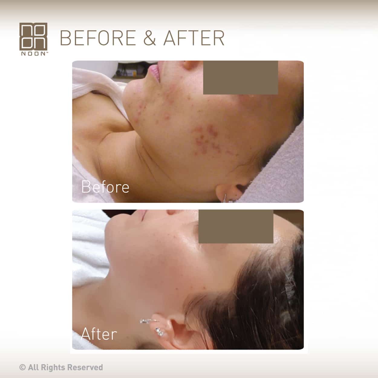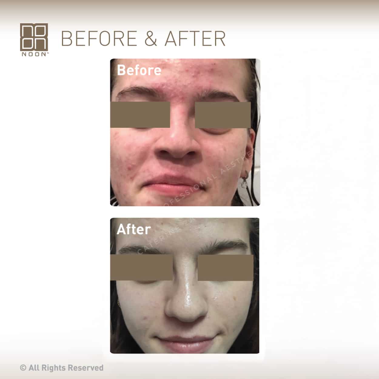 In mijn praktijk werk ik met producten van NOON Aesthetics. NOON Aesthetics maakt gebruik van fruitzuren en chemische peelings (AHA’s en BHA’s) die diep inwerken op de huid en gericht zijn op structurele huidverbetering. De behandelingen zijn veilig en geschikt voor alle huidtypes.